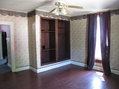 Stray observations: door with top hinge barely hanging on; disgusting carpet; weird window shutter; hospital waiting room wallpaper; domestic ghosts (as seen in lower lefthand corner); nothing desirable whatsoever...
